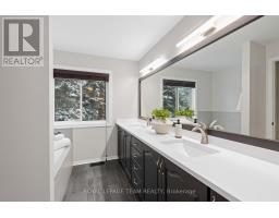 Maintenance Free Living! Condo fees include snow removal and lawn care! Welcome to this beautifully updated end-unit condo townhouse in the highly sought-after Centrepointe neighbourhood. Surrounded by mature trees, this bright and private home offers a peaceful setting with added natural light-an ideal retreat at the end of the day. The spacious layout features four bedrooms, including three on the upper level and a full bedroom on the main floor, perfect for guests, a home office, or multigenerational living. The oversized primary bedroom offers a comfortable retreat with plenty of space to unwind. Hardwood flooring flows throughout, creating warmth and continuity, while the updated kitchen offers a functional layout with a convenient breakfast bar-ideal for casual meals, homework, or morning coffee. Renovated upstairs bathrooms add modern comfort and style, enhancing the home's turnkey appeal. Enjoy cozy evenings by the electric fireplace in the living room or the wood-burning fireplace in the basement, offering warmth and versatility year-round. Thoughtfully updated and beautifully maintained, this calm and welcoming home allows you to simply unpack and enjoy. Ideally located just steps from Centrepointe Park, the library, transit, and close to shopping, schools, and recreation. Be sure to watch the video attached to this listing! (id:61594)