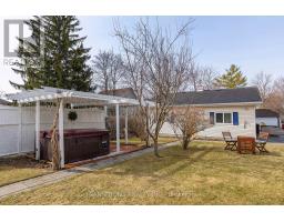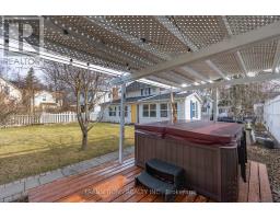 Charming small-town living in the heart of Gananoque! This bright and welcoming home offers approximately 2156 sq. ft. of living space with hardwood floors throughout, adding timeless elegance and continuity across all living spaces. Inside, you'll find a comfortable sitting room and a family room, giving everyone space to unwind. The sunken living and dining room features a cozy fireplace and overlooks the beautifully landscaped backyard, filled with a perennial garden, a pergola, a hot tub, and a classic white picket fence. An inviting space for family time, entertaining friends, and memorable summer barbecues. The oversized, heated double-car garage has laneway access. The second floor features a primary bedroom with a 3-piece ensuite that has heated floors, along with two additional bedrooms and a second 3-piece bathroom, also with heated floors, ideal for family or guests. Perched just steps from the historic Gananoque Municipal Marina, this home truly offers the best of small-town living. Enjoy having charming pubs, shops, banks, and the waterfront all within an easy walk from your doorstep. A wonderful place to call home. (id:61594)