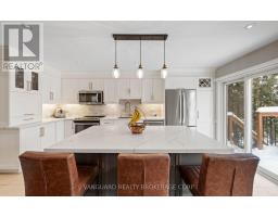 Beautiful sun-filled detached home located in the highly sought-after Aurora Grove community. This move-in-ready residence showcases strip hardwood floors, ceramic tile, zebra blinds throughout, new light fixtures, and pot lights, along with a brand-new gas fireplace in the family room. The functional layout features a combined living and dining room and a stunning, newly custom-built kitchen by Selba Kitchens, complete with top-of-the-line stainless steel appliances and exceptional cabinetry, perfect for family living and entertaining.A solid oak staircase leads to the second level offering a spacious great room, three generously sized bedrooms, and a primary retreat featuring a walk-in closet with custom cabinetry and a four-piece ensuite. The professionally finished walk-out basement adds valuable living space with pot lights throughout.The spectacular backyard oasis includes a new fence, pergola, mature trees, flagstone patio, and a large deck overlooking the private yard. Additional highlights include custom cabinetry in the laundry room. Absolutely stunning home in an exceptional location. (id:61594)