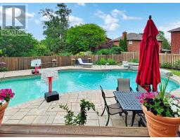 Welcome to this beautifully appointed 4+1 bedroom, 4-bathroom detached home on a rare oversized pie-shaped lot, tucked away on a quiet, family-friendly street. The stunning kitchen features an expansive center island, abundant cabinetry, gas range, and walkout to the backyard. Enjoy a professionally landscaped yard with a swimming pool and waterfall, multiple seating areas, green space, plus lawn and plant boxes with a sprinkler system for easy upkeep. The main floor includes two offices, a formal dining room, living room with backyard views, stylish powder room, and direct access to the double garage. Upstairs offers three spacious bedrooms and a primary retreat with walk-in closet and 4 piece ensuite. The finished basement includes a fifth bedroom, full bathroom, large recreation room with gas fireplace, and ample storage. Additional features: two-car garage, driveway parking for four, Nest home system, and close proximity to parks, transit, and top-rated schools. (id:61594)