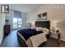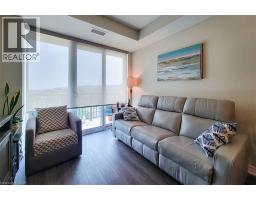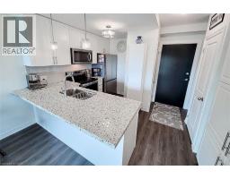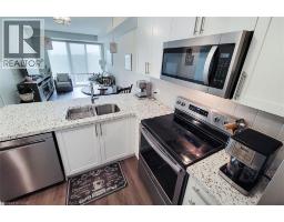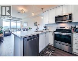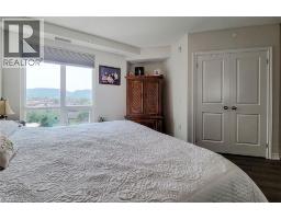 Beautiful new 2-bedroom condo featuring modern finishes throughout! Enjoy a spacious open-concept design with high ceilings, quartz countertops, a breakfast bar, and a stylish kitchen with stainless steel appliances. Both bedrooms are generously sized, with the primary suite offering a sleek ensuite finished with quartz counters. Step out onto the private balcony to take in both lake and escarpment views. This A+ building offers exceptional amenities including a large fitness centre, hot tub, outdoor terrace, library, games room, and an expansive party room—perfect for entertaining or relaxing. Room sizes are approximate. Includes parking (Level P2, Space #77) and locker (Locker #144, Room P207). (id:61594)