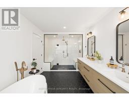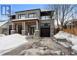 Situated in the heart of Westboro Village and directly overlooking Clare Gardens Park, this exceptional 2022-built semi offers over 3,200 sq ft of beautifully finished living space and an oversized South facing backyard. Thoughtfully designed for modern living with future flexibility in mind, the home features a separate side entrance to the lower level which is fully roughed-in for a legal secondary dwelling - offering excellent potential for multi-generational living or rental income. The main floor is both functional and refined, featuring a dedicated home office, a generous walk-in foyer closet for clutter-free living, and a striking custom gas stone fireplace that anchors the family room. Wide-plank European oak flooring and Hunter Douglas blinds add warmth and texture throughout. At the heart of the home, the custom Deslaurier kitchen showcases quartz countertops, premium appliances, designer lighting, and a walk-in pantry complete with custom millwork. The adjacent dining area is enhanced by an oversized bar with built-in wine fridge - perfectly suited for entertaining. Upstairs, the primary retreat offers an oversized balcony with durable composite flooring and a spa-inspired ensuite with heated floors. Custom millwork continues throughout every closet, maximizing both function and style, while a full upper-level laundry room adds everyday convenience. The fully finished lower level features high ceilings, a bright bedroom and full bathroom, and is fully roughed-in for a secondary dwelling unit - well-suited for guests or future suite configuration. All just steps to Richmond Road's boutiques and cafés, the Ottawa River Pathway, and Westboro Beach - an exceptional opportunity in one of Ottawa's most sought-after neighbourhoods. Exterior wooden posts will be sanded & stained. Tarion warranty will transfer. Irregular lot (27 ft frontage, 35 ft at rear). Incredible sound-proofing between the properties. This wonderful home awaits its new owner! (id:61594)
