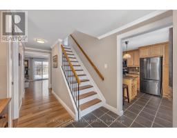 Welcome to this beautifully updated 3 bedroom, 3 bathroom single-family home in the heart of Orléans! Rich hickory hardwood flooring adds warmth and character throughout the main living areas, complementing the home's modern updates and inviting atmosphere. The renovated kitchen - created by combining two rooms into one spacious, functional layout - is truly the heart of the home. Featuring black stainless steel appliances, heated floors, a charming coffee nook, and a long island perfect for meal prep and entertaining, it opens seamlessly to the dining and living areas. The living room is highlighted by a stylish electric fireplace, adding warmth and ambiance. Step outside to your private backyard retreat complete with a large deck, tranquil pond, pergola, vine-covered canopy, mature landscaping, and fruit trees - ideal for relaxing or hosting guests. Convenient main floor laundry is located off the inside garage entry, with a powder room nearby. Upstairs, the spacious primary bedroom offers custom closet storage and cheater access to the updated main bath. Two additional bedrooms provide generous space for family or guests. The finished lower level features a cozy rec room, full bath, workshop, and ample storage. Walking distance to Bilberry Creek Trail, close to schools, transit, shopping, and amenities including the Ray Friel Recreation Complex, Ottawa Public Library - Cumberland Branch, and the Aline Chrétien Health Hub. A perfect blend of comfort, style, and location - don't miss this opportunity! (id:61594)