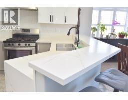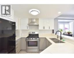 $495.29 MonthlyImmaculate and bright, open-concept 3 Bedroom end unit townhome in desirable Bayberry Village. Ideally located within the complex with open space and visitor parking to one side offering a park-like setting. The main level is perfect for entertaining thanks to the open layout combining the kitchen, dining, and living room which features a corner gas fireplace and terrace doors leading to the private patio. The renovated kitchen boasts modern white upper and grey lower cabinetry with hinged corner cabinets, quartz countertop with waterfall edge and backsplash, undermount sink, breakfast bar and chimney-style range hood. The handy powder room has also been updated with a quartz countertop vanity. The upper level has laminate flooring throughout and all bedrooms enjoy ample natural light. The large primary bedroom suite enjoys a vaulted ceiling, walk-in closet and renovated 3-piece bath with a large shower with rainfall showerhead. The 4-piece main bath, also renewed, is shared by the 2 additional bedrooms. The lower level offers a large rec room, laundry room and utility room with loads of storage. Features include California shutters, upgraded baseboards, white painted spindles, Decora light switches, inside entry to garage, plywood subfloors and is virtually carpet-free (only on stairs). The fridge, gas range, dishwasher and Samsung laundry pair are all included. This small quiet enclave of 43 townhomes is conveniently located across from St. Joseph’s Healthcare King Campus, close to Eastgate Square, Queenston Rd. & Centennial Parkway shopping and restaurants. Steps to public transit, and with excellent highway access to the Red Hill Valley Parkway and QEW and a short drive to the new Confederation GO station for commuters. Welcome Home! (id:61594)
