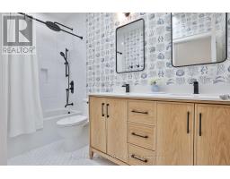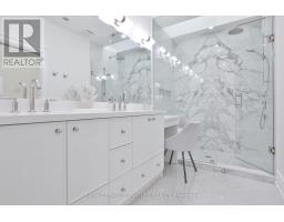 Welcome to 28 Belle Ayre Blvd, an exquisitely reimagined Georgian style residence on a rare 35 x 127.58 ft premium south-facing lot, in the coveted Maurice Cody PS district. This sunny 4+3 bedroom home offers over 3,700 sqft of finished living space, a grand foyer with gleaming checkered tiles, double closet, designer powder room, bright main floor with 9.5-10.5 ft ceilings, large principal rooms with wall-to-wall windows & generous space for entertaining. Oak hardwood floors, custom millwork, built-ins in every closet, extra tall solid core doors, designer hardware, elegant sconces & Serena & Lily wallcoverings elevate each level. New custom kitchen with a 10ft island waterfall counter, bookmatched backsplash, Perrin & Rowe brass faucets with filtration, La Cornue French gas range, 60" SubZero panelled fridge/freezer, hidden coffee station & double SubZero beverage drawers. The Primary Suite boasts a vaulted ceiling, stunning ensuite w/ glass shower, bench, feature wall, heated floors, water closet with washlet & custom double vanity w/ makeup desk. Two dressing rooms complete the suite; one decadent with brass hardware; the other a former 5th bedroom transformed into a luxurious dressing room/office with built-in desk, window seat & custom fluted drawers. Three additional bedrooms upstairs are spacious & light-filled with walk-in or double closets & new sound-proofed windows. Second flr laundry with sink & cabinetry. Side-door mud entrance with custom closet. The finished lower level features 8-9ft ceilings, heated floors, spacious lounge, two flex bedrooms, new bathroom, and abundant storage. South-facing backyard with a matching playground, hot tub, wood deck, interlock, new retaining wall & fence (2024) & ready pool permit. The extra-wide private double driveway + detached 1.5-car garage accommodate 3 oversized vehicles. Steps to top schools, TTC, Davisville Subway, June Rowlands Park, Beltline Trail, and best of Bayview & Mt Pleasant shops, cafes & dining. (id:61594)