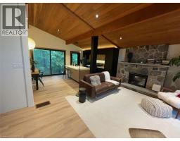 For more info on this property, please click the Brochure button. Welcome to this mid-century modern four-season home, just a short walk from the sandy shores of Wasaga Beach. Nestled on a quiet cul-de-sac and surrounded by mature trees, this 90' x 187' lot offers a peaceful and private setting with easy access to forest trails, biking paths, and outdoor recreation. This property is ideal for those seeking a full-time residence, a tranquil weekend retreat, or a high-end investment opportunity. This fully renovated property blends original charm with thoughtful upgrades. The interior features preserved 1970s cedar ceilings (15ft high), natural materials, and clean architectural lines. Slab on grade construction. No basement. Main Level: Entry, Office, 1 bdrm, 1 full bath with steam shower, and family room with F/P, bar/sink. Second Level: Kitchen/Dining, Living room with F/P, 2 bdrms, 1 full bath/tub and laundry. Large windows offering calming views of the trees and natural surroundings. Recent upgrades include a new steel roof (2021), 80,000 BTU gas furnace (2025), central A/C (2022), updated plumbing, and full electrical rewire with new panel (2022). Kitchen and dining area feature custom cabinetry, quartz countertops and new appliances incl. Bosch extra quiet dishwasher. Private, fully treed half-acre lot includes a firepit, natural landscaping, and offers a 5 minute walk to the beach via quiet, private pathways. Designed with inspiration from Japanese minimalism and Scandinavian warmth, the home offers calm, curated spaces throughout, making it a rare opportunity in one of Wasaga Beach’s most desirable locations. (id:61594)