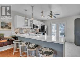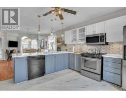 1897 sqft beautifully maintained home in a sought-after north end neighbourhood close to schools, amenities, and convenient commuter routes. This carpet free home features hardwood flooring in the main living area and laminate throughout the bedrooms and lower level. The main floor showcases a striking stone accent wall and elegant coffered ceiling, creating a warm and inviting atmosphere. The kitchen offers an oversized quartz countertop with bar seating, stainless steel fridge and stove, over the range convection microwave, and dishwasher. French doors lead to the expanded deck with black aluminum railings, glass panels, and low maintenance composite flooring, ideal for entertaining or enjoying quiet evenings outdoors. The bathrooms feature porcelain flooring and clean, functional finishes. The front foyer makes a great first impression with natural limestone flooring and an upgraded window and door insert. Updated light fixtures and newer door hardware add a fresh touch throughout the home. The fully finished lower level includes a self-contained two bedroom in law-suite with a shared entry, complete with its own kitchen featuring an island, stove, fridge, dishwasher, and a full bathroom. Shared laundry. Major updates include a new roof in 2017, furnace in 2019, and driveway in 2020 with parking for four cars plus two in the garage. Additional features include central air, central vacuum, garage door openers, a newer water softener and reverse osmosis system. Electric fireplaces on both levels. The property is fully landscaped and fully fenced, with mature trees and a perennial gardens, creating a private and peaceful outdoor setting. Ideally located close to Georgian College and RVH Health Centre, on a quiet cul-the-sac, with easy access to two major hwy for commuting. Enjoy nearby golf courses, ski resorts, local wineries, and year round recreational opportunities. (id:61594)