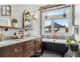 Welcome to 28 King George Street - a stunning 2022-built semi-detached home in the heart of Overbrook, complete with a fully legal 2-bedroom basement apartment & exceptional income potential. Ideally located just minutes to downtown Ottawa & within walking distance to parks, Rideau Sports Club, Ottawa River bike paths, and the Adawé footbridge to Strathcona Park, this home offers the perfect blend of modern living & urban convenience. The main residence features 4 spacious bedrooms, 2.5 bathrooms, highlighted by plank hardwood flooring & designer paint colours throughout. The open-concept main floor showcases a bright and inviting great room with nearly 9-ft ceilings, a dedicated den/office, and a convenient powder room. The stunning kitchen is designed to impress with custom slow-close blue cabinetry, a centre island, a stylish combination of quartz & butcher block countertops, a walk-in pantry, and high-end stainless steel appliances including a gas stove. The living room is anchored by a cozy gas fireplace with a striking live-edge wood mantle. Patio doors and a large south-facing picture window are both located at the rear of the living room, filling the space with natural light. The oversized open wood staircase features a west-facing window, further enhancing the bright and airy feel. Upstairs, the spacious primary retreat features a walk-in closet and a luxurious 5-piece ensuite with ceramic tile flooring, quartz countertops, double undermount sinks, a standalone bathtub, and a walk-in shower with rainfall head and built-in shelving. Three additional well-sized bedrooms, a full 4-piece family bathroom, a convenient laundry room, and a linen closet complete the second level. The fully legal 2-bedroom, 1-bathroom basement apartment offers a private entrance, ideal for rental income, extended family, or multi-generational living. Parking for 2 vehicles. A rare opportunity to own a modern, income-generating home in a prime central location. 24 hours irrevocable. (id:61594)