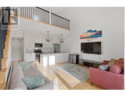 Welcome to 28 Meach Private, a stylish 1-bedroom plus loft unit that genuinely turns heads the moment you walk in. With soaring ceilings, hardwood floors throughout, and a layout that feels anything but ordinary, this one has a personality all its own. The main level opens into a bright, open-concept living and kitchen area anchored by a granite breakfast bar with seating for four. The kitchen features stainless steel appliances, upgraded pendant lighting, and plenty of counter space for cooking and entertaining alike. Large windows pull in natural light all day long, and the classic staircase with iron railings adds a sharp architectural touch that ties the whole space together. The bedroom sits on the main level alongside a 3-piece bathroom finished with oversized tile flooring, an undermounted sink, and a glass-enclosed shower. In-suite laundry with accessible shelving keeps daily living convenient and clutter-free. Up the stairs, the open loft offers a flexible bonus space, whether you need a home office, reading nook, or creative corner, along with its own private terrace, perfect for morning coffee or winding down in the evening. Completing the package: underground parking and a deep, extended caged storage unit. Steps from restaurants, transit, the Goulbourn Recreation Centre, and the Trans Canada Trail, this location gives you everything you need right at your doorstep. (id:61594)