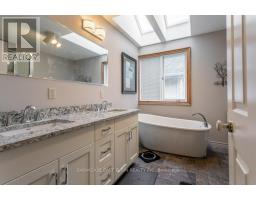A breathtaking three bedroom, three and a half bathroom residence is positioned on a beautiful street, nestled on a ravine lot and conveniently located within a short stroll of the East Elgin Community Complex and schools for grades 4-12. The recently renovated kitchen, complete with an eating area, opens to a spacious deck featuring either a screened room or an open deck with a canopy, all offering picturesque views of mature trees and the ravine landscape. The family room, featuring a wood burning fireplace, is adjacent to the kitchen and provides access to the deck and outdoor living space through a patio door. Upon entering the foyer, you are greeted by stunning double oak staircases leading to the upper and lower levels, with the foyer also opening to the living and dining room adorned with a vaulted ceiling and illuminated by natural light streaming through a generous skylight. The second floor boasts a sizable primary suite with a dedicated closet area and an updated four-piece bath. Additionally, there are two bedrooms, a loft area, and plenty of windows throughout for abundant natural light. The basement offers ample space to relax and unwind, featuring a sauna and an additional bathroom. Enjoy living in a family friendly neighbourhood with plenty of space indoors and out! (id:61594)