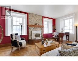 Set on a 1.88 acre estate on the edge of historic Perth, this 1875 stone home offers timeless charm, thoughtful updates, and room to grow. Lovingly maintained, the property blends the character of a true century home with a number of modern upgrades - most notably, a stunning chefs kitchen where a reclaimed altar from a local church has been transformed into the centerpiece island. Inside this home, you'll find three bedrooms and 2.5 bathrooms, including a beautifully renovated primary suite with a spa-like ensuite and a sun-filled bedroom that feels like a retreat. Hardwood floors, tall ceilings, and detailed finishes speak to the craftsmanship of a bygone era. A formal living room and separate dining room create a welcoming space for entertaining, while the cozy family room with a gas stove is perfect for quiet evenings at home. The living room has a wood-burning fireplace insert while the dining room features a second gas stove and a convenient pass-through to the kitchen, ideal for hosting and gatherings. Outside, you will find a large screened-in solarium and a hot tub on the back deck. A large barn offers a world of possibilities, whether you're dreaming of a workshop, studio, or a small flock of chickens. The home is currently on it's own well that provides excellent, pure water. Set well back from the street, this property offers a rare sense of privacy and country living, just minutes from the shops, restaurants, and charm of downtown Perth. A truly special home with a story to tell and plenty of room to write your next chapter. (id:61594)