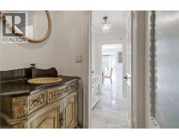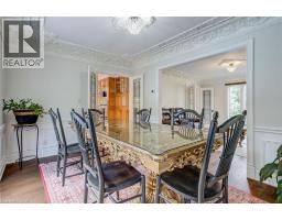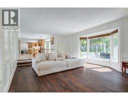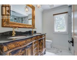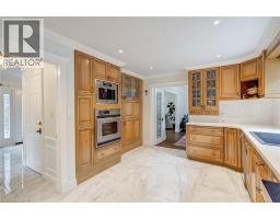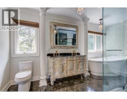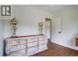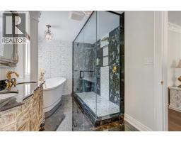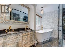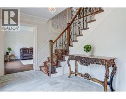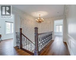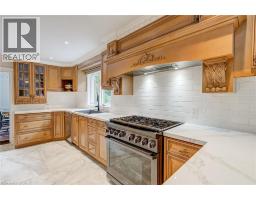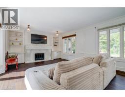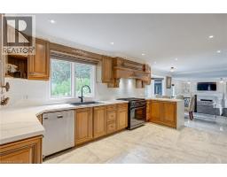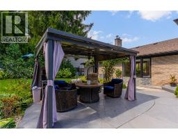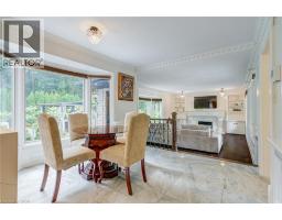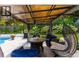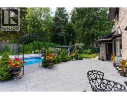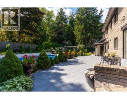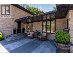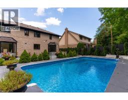 One-of-a-kind sprawling 2-storey home sitting on a gorgeous tree-lined cul-de-sac! This 4 bedroom, 2.5 bathroom home has over 2600 square feet and a fully finished basement with a walk-up! The front flagstone patio and steps leads to a wonderful family home with a main floor that follows a traditional floor plan, the tiled foyer leads to the formal living room and dining room with engineered hardwood and intricate crown moulding. The kitchen is a dream with white stone countertops, subway tile backsplash, abundance of storage and top of the line stainless steel appliances with added electrical outlets for any additions. The kitchen peninsula is the perfect place for prepping food or serving company and overlooks the breakfast area and spacious family room with hardwood floors and a walkout to the backyard. The main level is complete with a 2-piece powder room, office space and a side entrance. The custom red oak stairs lead to the second level which offers four spacious bedrooms, each with hardwood floors and a great amount of closet space. A 5-piece bathroom with double vanity, glass shower and laundry closet sits off of the hallway. The primary suite features a cozy gas fireplace, a walk-in closet and a fully renovated ensuite with tiled flooring, detailed swan faucet cascading into the free standing tub, double vanity and 2 gold fixtures in the glass shower. The lower level features a large recreation room, second laundry area, flexible den space with the potential of being a 5th bedroom and a walk-up to the backyard. The 110 x 106 foot lot allows for a heated pool, several lounge areas sitting on a stamped concrete patio and grass area. All this property located on a dead-end street lined with mature trees and nestled into the neighbourhood of Ancaster Heights/Mohawk Meadows. A short drive to all major highways, shopping, schools, parks and the Ancaster Mill. (id:61594)