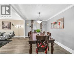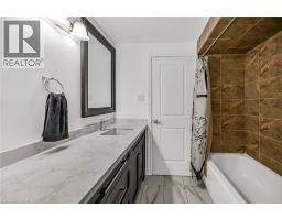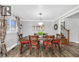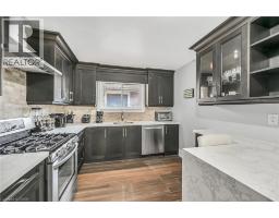 This spacious 4 level back-split has been renovated inside and out with quality finishes and attention to detail. Bright, open-concept main level with hardwood floors, spacious living/dining room, and custom kitchen with quartz counters, backsplash, and stainless steel appliances including gas stove. The upper level offers 3 bedrooms and a stunning 5-pc bath. Lower level features a family room with walkout to yard, side door entrance, bedroom, and 3-pc bath. The finished basement includes a rec room, laundry, cold room, and storage. Updated furnace, AC, roof, windows & electrical. The exterior boasts exposed aggregate driveway, walkways, porch with glass railings, fenced yard, and large shed with hydro. Located in a quiet cul-de-sac location with escarpment views, close to parks, trails, schools, and easy Red Hill/highway access. (id:61594)