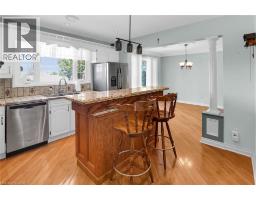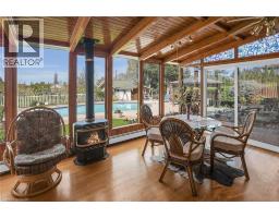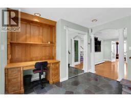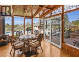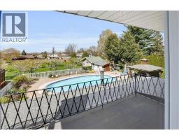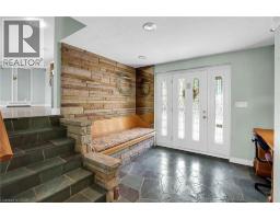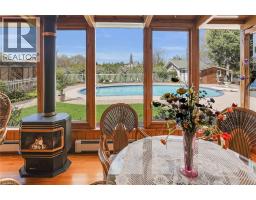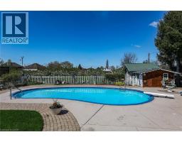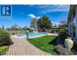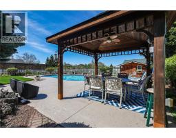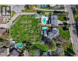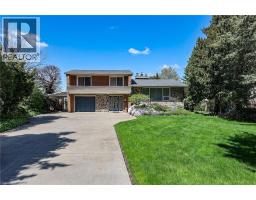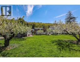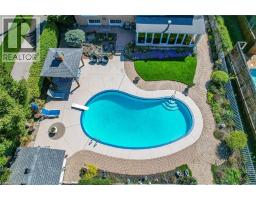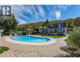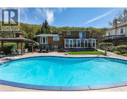 COUNTRY LIVING JUST STEPS FROM DOWNTOWN - Opportunities like this are rare—welcome to your own private retreat on nearly an acre (0.96 acres) of land, perfectly positioned within walking distance to downtown and offering stunning views of the Niagara Escarpment from the front, and your very own fruit orchard in the backyard. Lovingly maintained by the same family for nearly 50 years, this unique multi-level home begins with a spacious foyer featuring a custom built-in desk. Just a few steps up, you’ll find a bright and airy living room with a gas fireplace and a picture window framing breathtaking Escarpment views. Hardwood flooring flows seamlessly throughout all levels of the home. The open-concept layout connects the living room to a formal dining area and a well-appointed eat-in kitchen, complete with a breakfast bar and stainless-steel appliances. A cozy den with an electric fireplace and a 3-piece bathroom lead through French doors to a stunning 23' x 11' sunroom—perfect for year-round enjoyment, overlooking the lush backyard. Upstairs, you'll find three generously sized bedrooms sharing a beautifully updated 5-piece bathroom. Two bedrooms feature private balconies with Escarpment views, while the primary suite enjoys its own balcony with views of the backyard oasis. The bright lower level includes a recreation room, an additional kitchenette, and laundry—ideal for extended family or guest accommodations. Step outside to your dream backyard—an entertainer’s paradise featuring multiple seating areas, a large concrete patio surrounding a heated saltwater pool, a charming pool house, and a barn/workshop. This is truly a rare slice of country tranquility with urban convenience. Additional features include a single-car garage and a concrete driveway with parking for up to six vehicles. (id:61594)