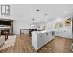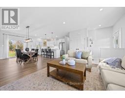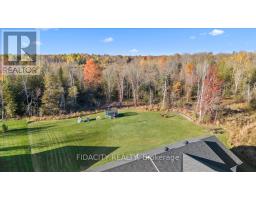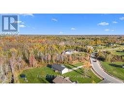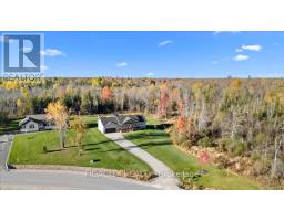 Welcome to 282 Ej's Lane, a stunning 3-bedroom bungalow sitting on 3.7 acres in the highly sought-after Moodie Estates. Nestled on a quiet street with no rear neighbours, this home offers privacy and tranquility with a long driveway leading to a double car garage featuring 11.5 feet ceilings. The main floor boasts 9-foot ceilings throughout and an open-concept layout with a beautifully upgraded chef's kitchen showcasing white cabinetry, quartz countertops, a large island with seating for four, built-in microwave, ample storage, and a farmhouse sink overlooking the picturesque yard. The spacious dining area is perfect for hosting family and friends, while the bright living room features large windows that flood the space with natural light and a cozy gas fireplace with a stone surround and wood mantle. The bedrooms are thoughtfully separated from the main living area, with the primary suite offering space for a king-sized bed, a walk-in closet, and a luxurious 4-piece ensuite with a glass shower, double sinks, and a double-door linen closet. The two additional bedrooms are well-sized with beautiful windows and accent walls. The lower level doubles the sqft and includes a finished office and bathroom rough-in, ready for your finishing touches. A functional mudroom and laundry area provide direct garage access and additional storage. Outside, enjoy a beautifully landscaped yard with a cozy firepit area and full front and back irrigation system to keep your lawn lush all summer long. Additional highlights include a gas BBQ line, Bell Fibe availability, constant pressure system, GenerLink at the meter base, upgraded siding, owned hot water tank and much more! The property's acreage extends into the trees to the right of the property and the neighbour owns the other half. Forest to the back and side lead to walking trails, all just minutes from Carleton Place and a short drive to Ottawa. This is one you don't want to miss! (id:61594)