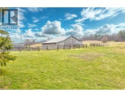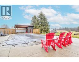 Set back from the road with a circular driveway offering parking for 20+, this renovated all-brick bungalow sits on 16 acres of scenic countryside. With 5 bedrooms and 3 bathrooms, including a private ensuite, the home offers space for the whole family. The main floor features wide plank luxury vinyl flooring, new oversized windows, new doors, and a bright, functional layout. Enjoy a spacious living room, a separate dining area, and a large dine-in kitchen with updated countertops and backsplash. A mudroom off the double garage includes a powder room and refreshed laundry space for everyday convenience. The beamed ceiling family room with a gas fireplace opens to a new covered deck, an ideal spot to take in panoramic views stretching across open fields to the forest edge. Downstairs, the partially finished basement includes a fifth bedroom and plenty of space for future development, along with ample storage. Outside, the fully updated inground pool (liner, pump, filter, heater, and safety cover) is ready for summer, complemented by a bar cabana. The barn offers three horse stalls and a grazing area, currently used for storage. Rarely found in a rural setting, this property features municipal water and gas heating, with easy access to St. George, Cambridge, Paris, and Brantford. With potential for land severance at the front, this is a unique opportunity to enjoy peaceful country living with added flexibility for the future. A home like this doesn’t come along often. (id:61594)