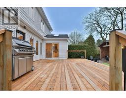 Welcome to an elevated lifestyle in Roseland, one of South Burlington's most coveted neighbourhoods. Set along a tree-lined street full of custom homes, this residence offers the ideal balance of comfort, and location. With 2536sf of living space, the home is designed for effortless living and memorable gatherings. Steps from the lake, waterfront trails, top-rated schools, parks, shopping, dining, and the downtown core, this is a location where every season brings something to enjoy. Commuters will love the easy hwy access and proximity to GO transit. Curb appeal makes a lasting impression with a newly painted exterior, welcoming front porch, interlock driveway w/ parking for 6, and large garage with backyard access. Inside, freshly painted interiors create a bright, welcoming atmosphere. The living room invites you to unwind by the gas fireplace, framed by California shutters and natural light. At the heart of the home, the chef's kitchen blends function and style with vaulted ceilings, a skylight, refreshed custom cabinetry, premium SS appliances, large island, and a walkout to the backyard-perfect for busy mornings, casual meals, and entertaining. The main floor offers a rare and versatile bedroom retreat with heated floors, laundry, and spa-inspired bath, ideal for guests, or multigenerational living. A sun-filled family room with beamed ceilings provides an inviting space for movie nights and relaxing evenings. Upstairs find a spacious primary suite, 2 additional bedrooms, and a luxurious 5pc bath. The fully finished lower level extends the living space with a rec room perfect for games, hobbies, or hosting friends. Outdoors, the backyard transforms into a private resort setting. A heated in-ground pool with walk-in entry, cabana with wet bar, low-maintenance artificial lawn, and a spacious deck with BBQ gas hookup create the ultimate backdrop for summer entertaining, relaxed weekends, and unforgettable memories-bringing resort-style living home, every day. (id:61594)