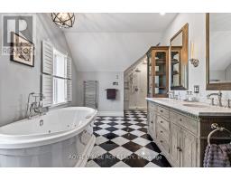 This beautiful historic country retreat sits on 9.3 pristine acres of stunning formal gardens, wildflower meadows, natural woodland, ponds, Grand River frontage, a fenced fruit and raised vegetable gardens as well as manicured trails to enable full enjoyment of this tranquil paradise. The main house built in 1890 offers 3,817 sqft of meticulously and luxuriously renovated living space, including a stunning 4-season, 600 sqft sunroom addition providing wonderful views across the gardens and countryside beyond. A separate coach house, divided into 2 apartments, provides an additional 1,585 sqft of accommodation for multi-generational living or revenue potential. A geothermal ground source heat pump provides optimal heating and cooling to the main house, with additional underfloor heating to tiled areas for that sumptuous touch during the colder months. High-efficiency wood burning fireplaces provide the finishing touch of home comfort luxury. Several outbuildings include a 1680 sqft 3 car garage with car lift, EV charger and an attached heated studio/workshop. A separate 1,150 sqft barn provides additional workshop and storage, whilst a converted silo with spiral staircase and a rooftop viewing platform is the ultimate spot for those sundowner cocktails amongst the treetops away from it all. All this just a few minutes from the quaint town of Grand Valley with all the essentials of daily life, 60 minutes to downtown Brampton, 60 minutes to Pearson and 15 minutes to Orangeville. Please see the attached feature sheet and video for all this stunning property has to offer. * Please note: In the Description and Measurement sections, I have used the words "In Between" and "Ground" to separate the floor levels of the main house from the coach house. * Please Note Water Frontage is an estimation only- sourced from Geo Warehouse (id:61594)