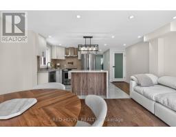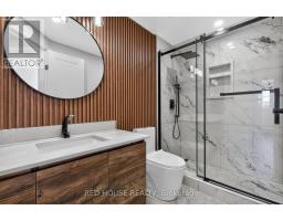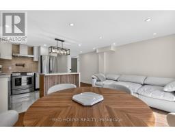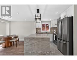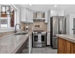 This meticulously upgraded residence where modern design and high-quality finishes come together in a premium offering. From the moment you arrive, the expanded front deck enhances curb appeal and creates a welcoming entry. Inside, the home unfolds with a clean, contemporary aesthetic defined by exceptional design and cohesive materials. Hardwood flooring and large format tile runs throughout the principal living spaces. The open-concept layout is bright and inviting, anchored by a stunning kitchen that has been thoughtfully reimagined. The kitchen features striking quartzite countertops and backsplash with a waterfall-style island, paired seamlessly with beautiful custom cabinetry. Stainless steel appliances, a modern range hood, and a designer light fixture complete the space, while the layout flows effortlessly into the dining and living areas-ideal for both everyday living and entertaining. The main floor is enhanced by pot lights throughout. Large sliding doors at the rear allow for natural light to flood the space. The staircase itself is finished with solid wood treads, glass panel railings, and black accents. The washrooms have been elevated to a spa-like standard. The primary bathroom showcases a frameless glass shower enclosure with black fixtures, and a rainfall shower system. A custom vanity with warm wood tones, and vertical slat paneling adds depth. Additional details throughout the home include upgraded interior doors, black lever hardware, and clean trim work. The lower level offers a fully finished, turn-key space with tiled flooring throughout, extending the living area and providing flexibility for recreation, work, or extended family use. Ideally situated in Barrie's sought-after Georgian Drive community, this home offers exceptional proximity to Highway 400, providing access for commuters, while close to a wide range of amenities. Every element has been carefully considered and executed, resulting in a home that is truly turnkey. (id:61594)