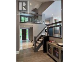 Exceptional modern home in the sought-after Beechwood neighbourhood, where design meets function in perfect harmony. Completely reimagined with meticulous attention to detail, this architecturally striking multi-level home showcases premium finishes and sophisticated style throughout. Step into soaring ceilings, sleek lines, and open-concept living spaces that effortlessly balance elegance and comfort. The dramatic family room, anchored by a stunning fireplace and framed by floating glass railings, offers seamless views across the main floor. At the heart of the home, a chef’s dream kitchen awaits with high-end Thermador appliances, a large working island, and a second island perfect for casual dining or entertaining. Upstairs, the private primary suite offers a tranquil escape with a sitting area and luxurious ensuite. Two additional bedrooms—once four—have been reconfigured to create spacious retreats but can easily be converted back to accommodate larger families. A modern 4-piece bath completes this level. Stylish ambience lighting and integrated sound system enhance the home's atmosphere on every floor. The lower levels offer versatile spaces for today’s lifestyle, including a bright rec room, a designer full bath, a large laundry room with custom cabinetry, and a flexible office or yoga space. Outside, enjoy a covered patio with a built-in BBQ kitchen, composite decking, and a fenced, pool-sized yard—ideal for outdoor living. Set on a quiet, tree-lined street close to top schools, universities, the new regional hospital, tech hubs, and nature trails. Beechwood Residents also enjoy exclusive access to a private community pool and tennis courts. A rare opportunity to own a truly remarkable home in one of the region’s most desirable neighbourhoods. (id:61594)