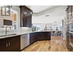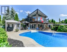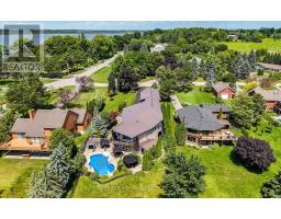 Renovated, improved and lovingly cared for, this property is truly unique. Located on a deep, south facing, lot w/80' of water frontage. Easy enjoyment of fishing/boating/snowmobiling/ice hockey. The custom compass star marks the heated portion on the driveway. Walk the landscaped entrance to the double front door of timeless design. The living room has wall-to-wall windows overlooking the lake and pool. The walkout to the balcony provides a sheltered spot for your morning coffee. The kitchen is spacious and renovated with high-end appliances & granite counters. Hardwood flrs throughout the main level. The primary bdrm has a 5pc ensuite with large steam shower. Walkout from the main fl family room to the covered BBQ entertainment area which also provides access to the 20x44 loft over the detached garage. The loft is perfect for work space or party room with built-in sound. The comfortable & family friendly walkout bsmt boasts a brick wood-burning fireplace with w/o to inground pool and patio. 5 fireplaces add warmth to this spacious home no matter what the weather. Landscaped lot gently slopes down to the waterfront. Mature trees and cedars make it private. Two heated garages with 4 access doors & room for 5 cars will intrigue any car enthusiast. Truly worth a look as this home shows pride of ownership on all levels. Situated on a quiet dead-end street. Be in before summer to enjoy all this home has to offer! See attached list of improvements. (id:61594)
