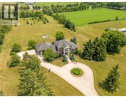Welcome to 2865 Herrgott Road, a rare opportunity to own a Langdon Hall inspired estate on nearly 5 acres of pristine countryside. Evoking the timeless charm of Ontario’s iconic country retreat, this exceptional property blends refined architecture, privacy, and modern comfort, offering over 4,400 sq. ft. of beautifully finished living space with 5 bedrooms and 5 bathrooms. Step inside to a welcoming main entry that opens to a bright, thoughtfully designed layout perfect for both everyday living and elegant entertaining. The eat-in kitchen features a gas range, oversized refrigerator, and walk-in pantry, with direct access to an expansive composite deck with glass railing, the perfect setting for morning coffee or evening gatherings. The great room is filled with natural light, while the formal dining room with gas fireplace offers timeless charm. The main floor primary suite is a private retreat overlooking the backyard, complete with walk-in closet and a luxurious ensuite. Upstairs, two bedrooms each feature private ensuites and walk-in closets, while a versatile loft opens to an upper balcony with sweeping countryside views. The finished walkout lower level offers endless versatility, featuring a large rec room with custom wet bar, two additional bedrooms, an office or gym, and in-floor heating with gas fireplace, making this space ideal for multi-generational living. A grand concrete circular driveway leads to a 4 car garage, including a heated lower level garage with interior access. With A1 zoning, the expansive property offers endless potential-from adding a pool or creating your own resort-style retreat. Ideally located just 10 minutes to Waterloo, 8 minutes to Wellesley, and 15 minutes to Kitchener, this luxury estate offers the perfect blend of tranquility and convenience. Surrounded by nature, it's more than a home—it’s a true piece of paradise offering a lifestyle you won’t want to miss, in one of Waterloo Region’s most sought-after rural settings. (id:61594)