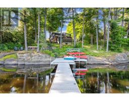 Welcome to Luxury on Brandy Lake! This four-season Muskoka treasure where timeless natural beauty meets modern sophistication is just 5 minutes from beautiful Port Carling! From the moment you arrive, the estate feels like a private sanctuary, framed by towering white pines and the glittering waters of Brandy Lake stretching out before you. Inside, wall-to-wall lakeside patio doors invite the outdoors in, bathing the open-concept living space in golden light. Every detail has been curated for elegance and ease, from the warm glow of the linear propane fireplace to the seamless integration of Lutron lighting, Art TVs, and a Sonos sound system that carries music from room to dock. The kitchen is a showcase of modern design, featuring a quartz waterfall island and premium appliances. The main level offers three serene bedrooms and a versatile games room that can transform into a fourth bedroom. A spa-inspired bathroom with heated floors, a stonewood vanity, and an illuminated LED mirror adds a touch of indulgence. Through the breezeway, discover a private guest suite doubling as a theatre room, complete with a projector, queen size bed, pullout couch and a walkout to the hot tub beneath the stars. Upstairs, a secluded bedroom offers unobstructed lake views, accompanied by a full bathroom and a reading nook. Outdoors, the hammock swings sway gently by the shoreline while music drifts softly across the lake. This is a place where mornings begin with sunrise reflections and evenings linger in twilight calm. Practicality meets luxury with ample parking for vehicles and boat trailers, municipal year-round road access, and the vibrant heart of Port Carling just minutes away with boutique shops and dining. Offered fully furnished, with linens and thoughtful touches included, this lakeside gem is both a turn-key haven and a proven investment property. This is an estate where every season writes a new chapter of elegance, comfort, and timeless Muskoka living. (id:61594)
