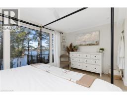 Welcome to Luxury on Brandy Lake! This four-season Muskoka treasure where timeless natural beauty meets modern sophistication is just 5 minutes from beautiful Port Carling! From the moment you arrive, the estate feels like a private sanctuary, framed by towering white pines and the glittering waters of Brandy Lake stretching out before you. Inside, wall-to-wall lakeside patio doors invite the outdoors in, bathing the open-concept living space in golden light. Every detail has been curated for elegance and ease, from the warm glow of the linear propane fireplace to the seamless integration of Lutron lighting, Art TVs, and a Sonos sound system that carries music from room to dock. The kitchen is a showcase of modern design, featuring a quartz waterfall island and premium appliances. The main level offers three serene bedrooms and a versatile games room that can transform into a fourth bedroom. A spa-inspired bathroom with heated floors, a stonewood vanity, and an illuminated LED mirror adds a touch of indulgence. Through the breezeway, discover a private guest suite doubling as a theatre room, complete with a projector, queen size bed, pullout couch and a walkout to the hot tub beneath the stars. Upstairs, a secluded bedroom offers unobstructed lake views, accompanied by a full bathroom and a reading nook. Outdoors, the hammock swings sway gently by the shoreline while music drifts softly across the lake. This is a place where mornings begin with sunrise reflections and evenings linger in twilight calm. Practicality meets luxury with ample parking for vehicles and boat trailers, municipal year-round road access, and the vibrant heart of Port Carling just minutes away with boutique shops and dining. Offered fully furnished, with linens and thoughtful touches included, this lakeside gem is both a turn-key haven and a proven investment property. This is an estate where every season writes a new chapter of elegance, comfort, and timeless Muskoka living. (id:61594)