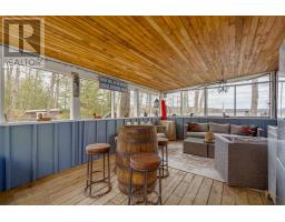 Charming 3 bed, 1 bath plus 2 additional bunkie's. 4-season Cabin at Three Mile Lake. A picturesque retreat surrounded by birch, pine, & sugar maple. With its charming Rustic Canadian aesthetic, it's the perfect taste of Muskoka living. Arguably one of the best spots on the lake with expansive, breath taking lake views, deep water with sandy bottom off the fixed dock (wave and wake-proof). Watch sunsets from the dock, then gather by the lake for a cozy fire and roast marshmallows under the stars. Property features a Muskoka room, 2 cozy bunkie's, with one on the water, property sleeps 14 people. Wood shed and two additional storage sheds, ample parking, back up generator, brand new roof. Close proximity to Port Carling and Bracebridge.The property has been thoughtfully upgraded with several recent improvements that significantly enhance its comfort and functionality. A new waterside bunkie deck was installed. A Brand new shingled roof on the cottage, ensuring durability and aesthetic appeal. In 2022, the water system was fully upgraded with a new water tank and UV water filtration system, including a tannin filter, which provides clean and clear water. Additionally, features like a heated water line, propane furnace, and a heat pump were added to improve energy efficiency and comfort throughout the year. The property also includes a Briggs & Stratton generator, providing reliable backup power, and comprehensive insulation under the house and in all interior walls, which helps maintain consistent temperatures. The interior was completely renovated, updating the kitchen, living room, bedrooms, ceilings, and floors to modern standards, creating a fresh and inviting atmosphere. These updates collectively make this lakeside retreat highly desirable, combining recent modernization with natural beauty. (id:61594)