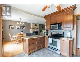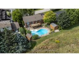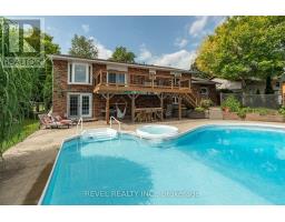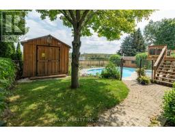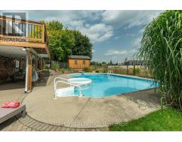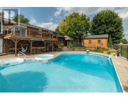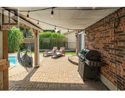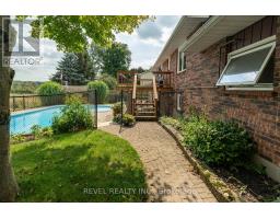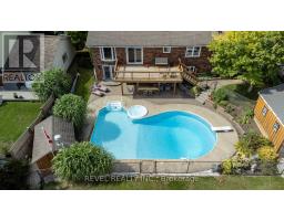 This beautifully maintained all brick bungalow is set in one of the areas most sought-after neighbourhoods. The main floor showcases gleaming hardwood floors, a bright and spacious living room with a stone fireplace, and a dining room featuring a large bow window with picturesque countryside views. The kitchen offers a breakfast bar and French doors that open to a 24' x 12' deck, ideal for outdoor dining and entertaining.Three bedrooms complete the main level, including a primary suite with a private en-suite bath. The fully finished lower level provides a fourth bedroom, a combined laundry and 2-piece bath, a versatile hobby or flex room, and a family room with walkout access to the backyard. Outside, enjoy summer living in your private, fully fenced yard with a 38' x 23' heated inground pool and 6-person waterfall spa. A perfect home for comfortable family living and effortless entertaining. (id:61594)