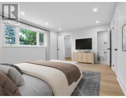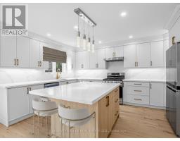 Impeccably renovated from top to bottom with no detail overlooked, this exquisite 3 + 1 bedroom family home is ideally positioned in one of Markham's most desirable neighborhoods, renowned for its top-rated schools. Sunlit and spacious, the home features brand-new hardwood floors with tall baseboards throughout the upper two levels, creating an elegant and cohesive flow. The modern kitchen is a true centerpiece, offering granite countertops and backsplash, undermount lighting, pot drawers, pendant fixtures, and a breakfast bar, seamlessly connecting to a bright breakfast area with walk-out access to a fully fenced backyard patio-perfect for summer entertaining or quiet relaxation. Upstairs, three generously proportioned bedrooms include a primary retreat with a sleek 3-piece ensuite and walk-in closet. The versatile lower level, with its separate entrance, bedroom, office, kitchen, and recreation room, easily functions as an in-law suite or guest retreat. Additional highlights include fresh designer paint, abundant storage, and thoughtfully curated finishes throughout. Outside, enjoy a brand-new driveway and elegant interlocking around the home including an oversized rear yard patio. With close proximity to parks, top schools, Loblaws, Starbucks, a variety of restaurants, Highway 407, and public transit, this home offers the ideal combination of style, comfort, and convenience for the modern family. Photos are virtually staged. (id:61594)