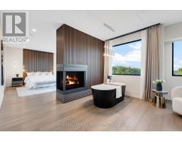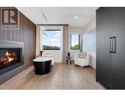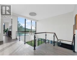 Directly across from the cliff-face of the Niagara Escarpment, in one of Milton's most serene and private settings, sits a newly built contemporary masterpiece designed by award-winning Sensus Design Studio. Resting on a remarkable 60 x 520+ lot backing onto 16 Mile Creek, this home offers a rare blend of modern architecture and countryside tranquility. With no neighbours in front or behind, walls of windows immerse you in nature, while the expansive backyard invites year-round enjoyment whether relaxing in the hot tub, recovering in the cold plunge, gathering around the fire pit, fishing, tobogganing, or even practicing your short game of golf! Inside, 21 ceilings and a floating staircase set a dramatic tone. A formal living room frames escarpment sunsets, while the sleek custom kitchen features high-end Fisher & Paykel appliances. The family room, anchored by a soaring stone fireplace, doubles as a home theatre with built-in projector and surround sound. The primary suite rivals a five-star retreat: a lounge with soaker tub overlooking the backyard, a double-sided fireplace, king-size sleeping area with custom headboard, walk-through closet, and spa-like ensuite. Two additional king-sized bedrooms each feature walk-in closets and lavish ensuites with wet rooms. Smart home features include lighting automation, landscape and irrigation systems, EV charger, and more. A perfect fusion of luxury design and natural beauty, this home is truly one-of-a-kind and must be experienced in person. (id:61594)
