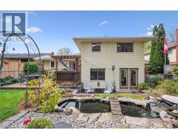 Welcome to this charming side-split home located on a quiet, family-friendly street in Guelph's desirable Kortright East neighbourhood. This beautifully maintained 3-bedroom, 2.5-bathroom home offers both comfort and character, perfect for growing families or those seeking a peaceful retreat within the city. Step inside to discover a spacious layout filled with natural light. With a bright family room and dining room at the front of the home, it's the perfect place to have your morning coffee or host the family for the holidays. At the back of the home, the inviting sitting room showcases a recently built, custom stone, wood-burning fireplace, creating the perfect cozy atmosphere for winter evenings. Step through this cozy room to find a stunning family room addition with expansive windows overlooking the lush backyard with a walk-out to your own private outdoor oasis.Enjoy tranquil gardens, a thriving vegetable patch, a beautiful pond, a relaxing hot tub, all surrounded by mature greenery for ultimate privacy. The large primary bedroom features a private ensuite bathroom and generous closet space. The other 2bedrooms are perfect for family, guest rooms, or offices with an updated bathroom just across the hall with a gorgeous skylight.The basement features a finished family room area perfect for a rec-room or gym with ceiling height able to accommodate a treadmill or stationary bike. Located close to top-rated schools, parks, trails, and amenities, this home combines the warmth of a family residence with the serenity of nature - a true hidden gem in one of Guelph's most sought-after neighbourhoods. (id:61594)