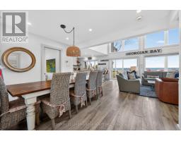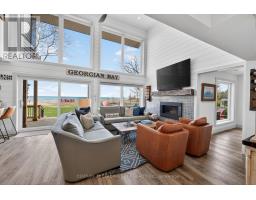 Welcome to 29 St Clair, this bright and airy 5 bedroom lakeside retreat on the stunning shores of Georgian Bay, with a separate 1 bedroom Coach House will not disappoint! The open concept design features a modern kitchen with built-in appliances and quartz counters overlooking the two storey, sun-filled living room with gas fireplace and water views! Entertain friends and family in the spacious dining area or outside on the expansive deck . The ground floor primary bedroom offers breathtaking views of the bay, private walk-out to hot tub, along with a spacious dressing area and a spa-like ensuite bathroom. A cozy den/work space is situated beside. The ground floor also offers a second primary bedroom with own ensuite offering comfort and privacy. Three additional good sized bedrooms upstairs, one with private balcony overlooking the bay. The detached oversized two car garage with Coach House offers a cozy private retreat with comfortable family room with heated floors, a separate bedroom, a kitchenette and a 3pc bath. This recently upgraded custom renovation is a must see!!! (id:61594)