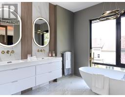Refined Luxury, Unmatched Value. This contemporary masterpiece combines exceptional craftsmanship with modern living in one of the citys most desirable neighbourhoods. From the moment you arrive the home impresses with its solid custom wood trim & doors, premium hardware, & 7.5" European white oak flooring that flows through the main level. Soaring ceilings on every level & spa-inspired ensuite bathrooms make a striking first impression. The heart of the home, the kitchen, is outfitted with leathered countertops, top-notch built-in appliances & custom cabinetry. Designed to flow seamlessly into open-concept living/dining areas with designer lighting & an airy, luminous feel. Upstairs, the primary suite is its own sanctuary, featuring dual walk-in closets, a luxurious 5-piece ensuite with freestanding tub, double sinks & European LED-lit mirrors. Each additional bedroom enjoys its own ensuite & built-in or walk-in closet space. The lower level amplifies the lifestyle offering: a true home gym with rubber flooring, mirrored wall & a walk-out to a private landscaped yard. Smart home features throughout include full home automation via Control4, elevator servicing every floor, rough-in for driveway snowmelt & high-end millwork everywhere you look. Cedar fencing encloses a landscaped yard. Property includes a walk-out basement and EV-Ready Garage, finished with Epoxy flooring. Nestled on a sought-after street in The Kingsway, 29 Walford offers access to top schools, shopping along Bloor Street, Great Dining & efficient connections to Downtown Toronto. It's an exceptional home for those who want refined design, convenience & a true sense of place. (id:61594)
