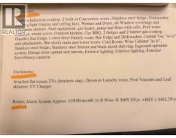 Central Vacuum, Dishwasher, Dryer, Freezer, Garburator, Oven - Built-in, Refrigerator, Sauna, Water Meter, Wet Bar, Washer, Window Coverings, Wine Fridge, Garage Door Opener |
