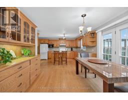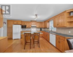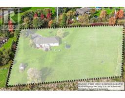 Well cared for fully finished 3 bedroom, 2.5 bath bungalow with two fireplaces (gas & wood stove) situated on fenced 2.24 acre property. Large driveway with ample parking for approximately 10 cars. House is set back a good distance from road & contains two separate entrances (from side of house & from inside garage) to lower level allowing for potential future in-law set up capability. Crown moulding & hardwood flooring is featured throughout the living room, hallway & all bedrooms. Eat-in kitchen showcases oak kitchen cabinets, ceramic backsplash, breakfast bar island, built-in oak desk plus built-in oak hutch/buffet combo, hardwood flooring & patio door to deck & rear yard. Corner gas fireplace with lovely oak surround in living room. Generous sized primary bedroom with walk-in closet & 4 piece ensuite with separate shower & jetted tub. Convenient main floor laundry room provides access to lower level & covered patio & side yard. Lower level offers additional living space with an oversized rec room with laminate flooring & a WETT certified wood stove, den with built-in shelving & a cozy game room plus utility & storage rooms. Newer furnace & central air (2019). Country living with close proximity to main road. Several nearby amenities. Only about a 20 minute drive to Upper Centennial Parkway in Stoney Creek via Highway 20. (id:61594)