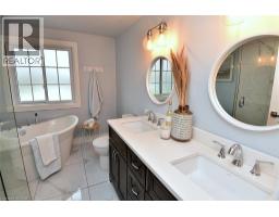 Tucked away at the end of a quiet court in Shoreacres—one of Burlington’s premier neighbourhoods—this exceptional home sits on a beautifully landscaped 40 x 109 pie-shaped lot designed for both relaxation and entertaining. The backyard is a true retreat, featuring a hot tub, private putting green, covered porch off the family room, a spacious deck, and a dedicated children’s play area—offering multiple inviting spaces to gather with family and friends. Inside, the home has been extensively updated with a bright, open-concept layout, showcasing high-end appliances, quality finishes, and elegant hardwood flooring throughout. The family room is filled with natural light from large windows and anchored by a cozy gas fireplace, making it the perfect setting for family movie nights or a comfortable hangout for teens. The main bathroom is a luxurious escape with a freestanding soaker tub, curbless shower, and heated floors, while an additional beautifully renovated bathroom on the lower level is sure to impress as is the rec room which can also be used as a bedroom. With nothing left to do but move in, this home delivers turnkey living in a highly desirable location. (id:61594)