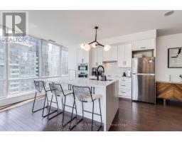 Bathed in the gentle southeast light that only a high corner suite can claim, Festival Towers Suite 2912 feels less like a condo and more like a private observatory above King West. True floor-to-ceiling glass stretches across both bedrooms, the living-dining expanse, and a 143-square-foot balcony, capturing a spellbinding tableau of the CN Tower, downtown skyline, and a distant shimmer of lake. Inside, 1,249 square feet have been thoughtfully re-imagined for both daily ease and elevated entertaining. The kitchen, redesigned in 2021, balances form and function with crisp white cabinetry, a discreet pantry wall, a stone waterfall island with hidden storage and pop-up power, and a huge dining area ready for everything from early-morning smoothies to multi-course dinner parties. Both bedrooms are exceptionally large and both Bathrooms have been completely renovated with the primary ensuite having in marble-style wall tiles, a sleek new vanity, brushed gold hardware, and immaculate fixtures; the second full bathroom mirrors the same elevated finish in matte black. Life here is effortlessly practical with your own parking space and locker keep city living organized yet the buildings amenity collection turns ordinary days into something closer to resort living: a white-glove 24-hour concierge, hotel-calibre indoor pool with steam and sauna, a fully equipped fitness club, yoga studio, skyline terrace with cabanas and barbecues, private cinema, guest suites, and even exclusive TIFF screenings in the in-house theatre. Michelin-starred restaurants, designer boutiques, transit, the PATH, and the Financial District sit right outside the front door, but Suite 2912 cocoons you above it all, wrapped in sun, sky, and a quiet sense of privilege. To appreciate how naturally the space flows and how the view steals every scene explore the attached 3D Matterport tour, then come experience the sunrise for yourself. (id:61594)