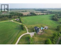 Stunning custom built country estate home on 30 acres of peace, privacy and tranquility. Just west of Orangeville with easy access to major highways. Features quality materials and workmanship top to bottom. Extensive landscaping, pool, hot tub, pool house and patios. Chef's delight kitchen with centre island overlooking the front gardens. Lots of counterspace for the gourmet. Formal living and dining rooms. Cosy and comfortable main floor family room with propane fireplace overlooking rear grounds and surrounding countryside and a walkout to the deck overlooking pool. Handy main floor laundry with access to garage, main floor powder room and more. Upper level features two sun filled bedrooms and a 4 piece bath. Lower level recreation area features a unique stone and brick fireplace (wood) and a walkout to patio overlooking pool, hot tub and pool house. In floor heating in lower level. Ideal set up for in law or casual entertaining. 26' x 42' shop with separate driveway and well. Suitable for home occupation business. Possibility for second home (Township of Amaranth for details) Rogers Fibre Optic internet available. This lovely home is built with pride of ownership throughout. Central metering for hydro. 2 wells on property. (id:61594)