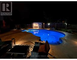 A very rare find. Set on a private, quiet, south-facing lot atop of the uplands with mature trees, this home offers a true resort-style backyard featuring a large saltwater pool (updated pump, heater, chlorine generator, and new cover), low-maintenance landscaping, stamped concrete patios, solar lighting, and a fully renovated cabana with bar, shower, and bathroom-perfect for summer entertaining and privacy. Inside, soaring ceilings, elegant and modern chandeliers, and walls of windows flood the great room with natural light, creating an immediate impression. The kitchen sits at the heart of the home, offering stainless steel appliances, extensive cabinetry, and a centre island, seamlessly connecting to the family room and backyard. Upstairs, four generous bedrooms include a spacious primary retreat with ensuite and walk-in closet. The finished basement adds flexibility with a bonus room, full bath, storage rooms, and a bright rec space, ideal for guests, teens, or a home office, with additional room for a gym or workspace. The professionally finished garage is truly one of a kind, designed for both function and style, with premium flooring, suspended storage, beautifully designed shelving, and automated bike storage. Recent upgrades include a premium metal roof with 50-year guaranteed performance, advanced fully sealed sump system, along with smart home features such as a 4th-gen Nest thermostat, Bluetooth keypad entries, and app-controlled garage access with integrated cameras, and many more. Located close to parks, Masonville amenities, and within the highly sought-after Jack Chambers Public School catchment, this meticulously maintained home delivers an exceptional balance of lifestyle, space, and setting. (id:61594)