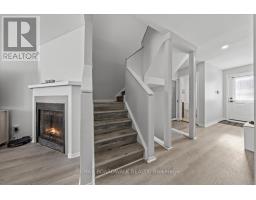 Welcome to this 3-bedroom, 2-bath condo townhouse located in the highly sought-after Fallingbrook community. Close to parks, schools, and convenient transit.The main level features laminated flooring throughout, a welcoming front entrance with a closet, and a convenient powder room. The bright L-shaped living and dining area features a cozy wood-burning fireplace, a large bay window, and ample space for entertaining.The updated kitchen is a standout, complete with quartz countertops, stainless steel appliances, and a centre island with additional cabinetry. Perfect for both everyday living and hosting. Step outside to your private deck with no direct rear neighbours, offering added privacy and a peaceful outdoor retreat.Upstairs, the spacious primary bedroom features dual walk-in closets, a separate vanity with sink, and an updated cheater ensuite bathroom. Two additional bedrooms complete the upper level.The finished basement provides a large recreation room, ideal for a home office, gym, or family space, along with plenty of storage. Enjoy the convenience of inside access to the single-car garage, plus ample visitor parking throughout the community.Residents also enjoy access to an in-ground pool and clubhouse, perfect for summer enjoyment. A wonderful opportunity to put your own touch on a home in a great location, nestled in a family-friendly community close to parks, schools, and transit. Furnace, A/C ($125/per mth) (id:61594)
