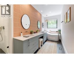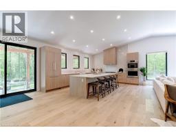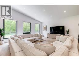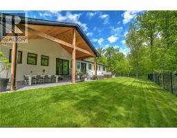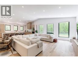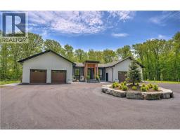Welcome to The Forest Home! Live inside a painting with every changing season. A breathtaking custom estate nestled on 6.39 acres of pristine, wooded landscape, offering the ultimate in privacy, serenity, and refined living. Designed as a forever home and built to exacting standards, this exceptional bungalow is a masterclass in modern elegance and timeless design. From the moment you arrive, the homes architectural symmetry impresses with two double garages flanking the stately entrance for a dramatic and balanced curb appeal. Inside, approximately 3,250 sq. ft. of thoughtfully curated main floor living unfolds in an airy, open-concept layout. Inspired by Scandinavian simplicity and elevated farmhouse style, every space feels grounded in nature yet luxuriously appointed. Impeccable finishes and high-end upgrades are found throughout too numerous to list here, but detailed in the attached brochure. Every detail has been carefully considered: from the gourmet kitchen, walk in pantry, coffee bar, every bathroom having a different theme with imported tiles and the rustic wood stove that boasts the most amazing roaring fires! Outdoor living is equally spectacular. Enjoy alfresco dining on the covered patio, unwind in the outdoor lounge, or soak in the hot tub under the stars and entertainers dream and a private retreat in one. The expansive walk-out basement with separate entrance offers limitless potential for an in-law suite, studio, or bespoke entertaining space. The long driveway accommodates guests with ease, while the brand-new 40 ft well and septic system provide long-term peace of mind. Siding onto the 40 Mile Creek, this estate feels worlds away yet is just 6 minutes from charming downtown Grimsby and 30 minutes from the renowned wineries, boutiques, and fine dining of Niagara-on-the-Lake and Niagara Falls. With easy access to Hamilton and Burlington, this location perfectly balances seclusion and convenience. (id:61594)