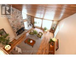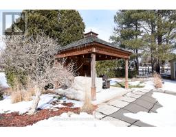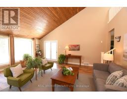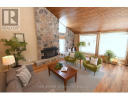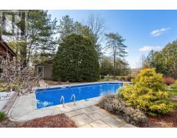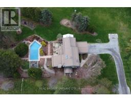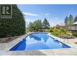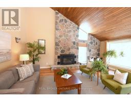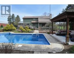 Lovely 3-bedroom home with 2 full baths and 2 powder rooms set on a private, expansive 1.5-acre treed country lot, surrounded by nature at every turn. Large picture windows throughout flood the home with natural light and offer peaceful views from nearly every room. The spacious primary suite features a fireplace, 3-piece ensuite, and walk-in closet with convenient laundry. A second bedroom offers its own 3-piece ensuite and walk-in closet, while the third bedroom provides flexible space for family, guests, or home office use. The open main floor offers generous living space, including a powder room and private office. The large country kitchen features abundant cabinetry, bonus pantry /coffee service area, and dinette with French doors leading to a multi-level deck. The sunken great room with vaulted ceilings, stone feature wall, and gas fireplace creates a warm gathering space with a walkout to the private yard. A formal living room with coffered ceiling and gas fireplace and a large, three-season sunroom add additional living and entertaining options. Inside entry from the double garage adds everyday convenience. The spacious, fully finished , partial basement provides additional living space with carpeted floors, a 2-piece bath, a hobby/bedroom area and second laundry rough-in in utility room. The utility room has laundry rough in . Step outside to a private backyard oasis featuring an in-ground pool, beautifully landscaped grounds, and a solid wood gazebo with metal roof for shaded enjoyment. This home is tastefully refreshed in neutral tones and move-in ready. RSA. (id:61594)