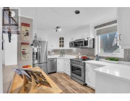 This pristine 3 bedroom, 2 bathroom home offers a great blend of character and thoughtful updates in a well-designed 1.5 storey layout. The beautifully updated kitchen is bright and charming, featuring stainless steel appliances, a large window, and a cute pass-through to the dining room complete with a countertop and seating for two-perfect for casual meals or entertaining. The dining room is generously sized and showcases a cozy gas fireplace along with a large window that continues the home's bright, airy feel. Just beyond, the spacious living room is anchored by a second fireplace, creating a warm and inviting central gathering space. The bedrooms are all well-proportioned, each with thoughtful updates throughout. The main bathroom features a stand-up tiled shower with an upgraded jet faucet for a spa-like experience. Upstairs, you'll find two additional bedrooms with large windows and ample storage, offering a comfortable and private retreat. Both the main and upper levels are carpet-free, adding to the home's clean feel and ease of maintenance. The finished lower level extends your living space with a comfortable rec room, perfect for movie nights or a play area, along with a laundry room, 3-piece bathroom, and ample storage. Outside, the private, fully fenced backyard is a great place to unwind, featuring a spacious patio for outdoor dining, pond and a garden filled with colourful perennials, along with apple trees, strawberries, and raspberries to enjoy throughout the seasons. The double car garage provides plenty of room for parking and storage. Situated in the sought-after East Ward and just steps from the Kitchener Auditorium, this home is within walking distance to parks and schools, and offers convenient access to shopping, transit, and the 401 for commuters. (id:61594)