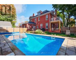 Welcome to Barr Street a rare opportunity to own a stunning 3-storey brick Century Home that blends historic character with thoughtful modern updates. Step inside to find spacious and versatile living areas on the main floor, including a cozy front living room, a bonus family room, a formal dining room, and a bright kitchen with a center island. At the back of the home, a well-designed mudroom with built-in cubbies, abundant storage, heated floors and a 2-piece powder room provides everyday convenience. The second floor hosts four generously sized bedrooms, each with its own closet. The primary bedroom boasts a private 4-piece ensuite a rare feature for a home of this era. Another 4-piece bath services the remaining bedrooms, one of which opens to a large balcony. You will also find laundry on the second level. The third floor offers two additional bedrooms and a 3-piece bath, perfect for guests, teens, or a private office retreat. The lower level includes excellent storage and a workshop. Outdoors, enjoy two covered porches, a back deck, and a fully fenced yard that leads to your own heated inground pool surrounded by interlock stone an ideal setting for relaxing and entertaining. Located on historic Barr Street, this home is just minutes from major amenities and within walking distance of schools, parks, and downtown. A truly special property combining timeless charm with modern family living. (id:61594)