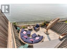 Welcome to the ultimate lakefront lifestyle. This fully renovated 3-level townhouse offers unobstructed, panoramic views of Lake Ontario so close to the water, you can practically dip your toes in. Located just 600 metres from downtown Burlington, this is a rare blend of tranquility and convenience. This 3-level townhouse (1,600 plus SF) offers 1 bedrooms (potential for 2nd if you converted large walk-in closet back into a bedroom), 3 bathrooms (2 full, 1 powder) and 4 separate patio/terraces (huge 400 SF lower terrace at the water's edge). In 2020 this unit was completely gutted to the studs and rebuilt by the renowned Bespoke Home Solutions with a total renovation budget exceeding $500K . The gourmet kitchen has been masterfully crafted with designer finishes including: Insinkerator food waste disposal, hot water tank/dispenser, Porter & Charles warming drawer, Built in Miele Appliances (including a $7K plumbed in Coffee Machine), microwave/convection oven, Combi Steam Oven, Dacor Fridge & Freezer and Gravelle custom cabinetry throughout. The spacious primary suite is a true retreat, featuring a spa-inspired ensuite with heated floors, a two-person soaker tub, and a private balcony with stunning sunrise views over the lake. The second bedroom has been converted into a designer walk-in closet with custom cabinetry and a centre island, offering both form and function (easily reverted to a bedroom if desired). Lower level family room offers a full bathroom, ample storage and ability to offer a guest suite with use of a murphy bed. Backwater valve in basement. Home is equipped with Sonos built in ceiling speakers with hooked up amplifiers and speaker selector options. Large 400 SF back terrace is fashioned with a BBQ gas line and has a hook up for a Hot Tub. (id:61594)