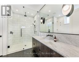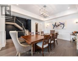 Your dream home awaits in an exclusive enclave just steps from Lake Ontario and minutes from downtown Burlington's shops, cafes, and restaurants. With 4+1 bedrooms and 6+2 bathrooms and a fully finished lower-level ideal for entertaining or extended family living this upgraded, custom home truly has it all. On the main level, hardwood floors, 10ft ceilings, wainscoting, coffered ceilings, and an oak staircase with wrought iron accents set a refined tone. The home features formal living and dining rooms, as well as a main floor family room with custom built-ins, a gas fireplace and patio doors leading to the exterior. A convenient mud room with access to the double car garage adds to the practicality of the space. The customized kitchen boasts a large center island, quartz countertops, a gas range, stainless steel appliances, and a cozy breakfast area. Upstairs, the primary suite includes a dressing room, ensuite, and laundry, while three additional bedrooms each enjoy their own ensuite bath. The fully finished lower level offers a spacious living area with a fireplace, projector screen, built in speakers, glass enclosed gym, guest bedroom, and heated bathroom floors. Set on a low-maintenance lot, this home offers both convenience and luxury, with a landscaped front yard featuring a sprinkler system and security cameras, plus a covered rear patio designed for relaxing outdoor living. (id:61594)