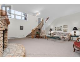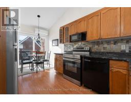 WELCOME to this bright and spacious condo townhouse in Barrie's desirable East End, offering nearly 1,500 sq.ft. of finished living space. This thoughtfully laid-out home features 2 bedrooms and 2 full bathrooms, making it ideal for professionals, down-sizers, or first-time buyers seeking comfort and convenience. The main living area is highlighted by cathedral ceilings and an abundance of natural light through the large front picture window. Enjoy seamless flow from the seating and dining areas, through the galley kitchen with oak cabinetry and raised bar top, continuing into the breakfast nook and out onto the large balcony, where afternoon sun creates an ideal space to relax or entertain. One bedroom and a 3-piece bathroom complete this level. The lower level is an absolute treat, featuring over 20-foot soaring ceilings over the staircase, and even more natural light from that large picture window. 9-foot ceilings on this level are rarely found in homes like this, and the all-brick fireplace mantle serves as a striking focal point in the oversized recreation room. The second bedroom, complete with a large window and 4-piece ensuite bathroom, adds the finishing touch to this impressive space. The functional layout offers excellent separation for everyday living, entertaining, or working from home. A major advantage of this unit is two parking spaces conveniently located right at the front door. Recent updates provide added value and peace of mind, including roof, windows, doors, select appliances, and a ductless mini-split system for efficient heating and cooling. Ideally located in Barrie's East End, this home is minutes to schools, parks, shopping, and everyday amenities, with easy access to Kempenfelt Bay, the Simcoe County Trail, and major commuter routes. Enjoy carefree, low-maintenance living in this bright and well-maintained condo townhouse in a fantastic East End location! (id:61594)