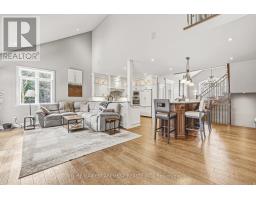 This STUNNING renovated, detached BUNGALOFT sits in a quiet enclave in Aldershot. Featuring 3+2 bedrooms, 3.5 bathrooms, over 2400 square feet PLUS a fully finished lower level and a DOUBLE car garage! The home features quality designer finishes and fixtures throughout. The open concept floor plan boasts vaulted ceilings, hardwood flooring and plenty of natural light. The large foyer opens to the dramatic, oversized dining room with 14' ceilings. The incredible kitchen features custom cabinetry, a large accent island, granite counters and top-quality appliances. The kitchen flows directly to the large 2-storey family room which includes custom built-ins, a gas fireplace, in-wall speakers and two sets of french doors leading to the private backyard. The large primary bedroom has a walk-in closet and a spa-like 4-piece ensuite with heated flooring. The main level also includes a separate powder room and garage access! The 2nd level includes 2 spacious bedrooms, a beautiful 4-piece bathroom and laundry room. The professionally finished lower level features 9 ft ceilings, radiant in-floor heat flooring throughout, 2 bedrooms AND a den, a 3-piece bathroom, large rec room / media room and plenty of storage space! The exterior of the home has been extensively landscaped and features a private low maintenance backyard with a large deck and turf! Amazing location- close to all amenities and transportation! (id:61594)